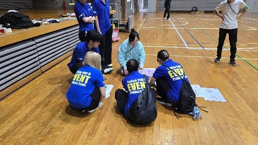 設営時のコート作りやトーナメント表貼り、受付、試合開始後はコート周辺での誘導やボール拾い、得点記入や本部への結果報告などを担当。この試合に向けて一生懸命練習してきた子供たちのプレーや、先生方?親御さんたちの熱気と応援は、そばで運営を担当している学生たちを感動させるほどでした。終わったあとのモップ掛けも含め、終始学生たちは自ら考えながら積極的に行動しており、主催者からは「大変助かった」「こんなに早く撤去が終わったことはなかった」と評価いただくこともできました。学生たちにとって、子供?保護者への対応や基本的な現場力を学ぶ貴重な機会となりました。
